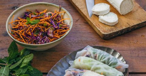 Rouleaux de printemps aux crudités et bûche de chèvre