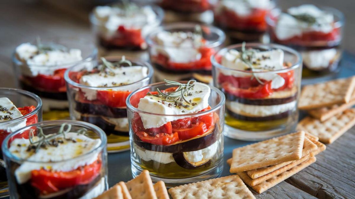 Les verrines de légumes confits au fromage frais et crackers sont une entrée à la fois gourmande et vibrante, parfaite pour épater vos invités lors d’un apéritif ou d’un repas convivial. Leur simplicité de préparation cache une délicatesse irrésistible grâce à l'harmonie des saveurs et des couleurs.