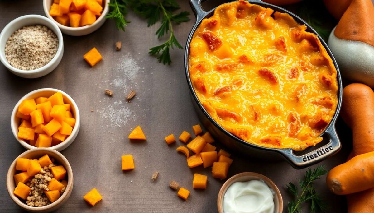 Le gratin de potiron et patates douces est une belle représentation des plats d’automne, célébrant les produits de saison tout en offrant une expérience gustative riche et réconfortante.