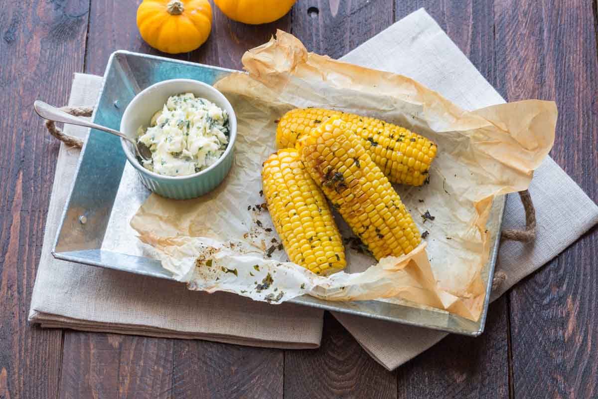 - Préparez les épis de maïs : retirez les feuilles et le foin, puis enduisez-les généreusement du mélange de beurre aux herbes. Réservez le reste du beurre pour le service.