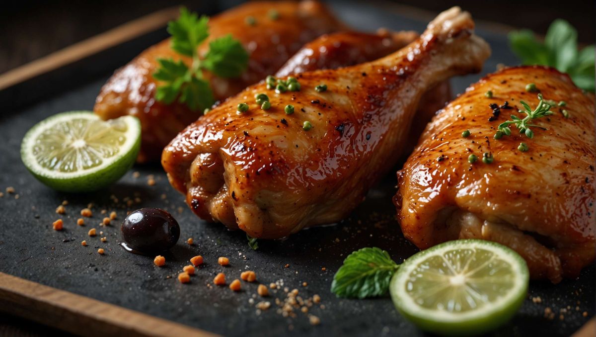 Préchauffez le four à 180 °C. Pendant que le four chauffe, émincez l’oignon et hachez l’ail. Disposez les pilons sur une grille ou dans un plat de cuisson, puis ajoutez l’oignon et l’ail par-dessus pour plus de saveurs. Enfournez les pilons pour environ 45 minutes, en veillant à les retourner à mi-cuisson pour une grillade uniforme. Vous pouvez également les arroser d’un peu de marinade restante pour rehausser le goût.