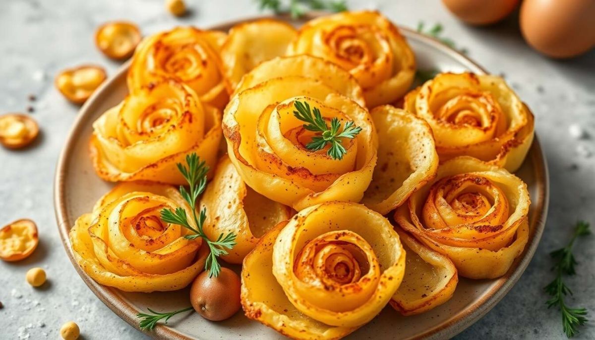 Les roses de pommes de terre croquantes offrent une façon chic et savoureuse de déguster ce tubercule sous une nouvelle forme. Ces petites créations ravissantes sont non seulement délicieuses, mais elles enchanteront vos invités avec leur présentation raffinée. Préparez-les avec soin et passion pour un résultat qui émerveillera les papilles et égayera les yeux.