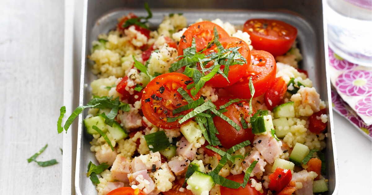 3. Incorporez le jambon, le concombre, les tomates et l'oignon préalablement coupés en dés. Mélangez délicatement.